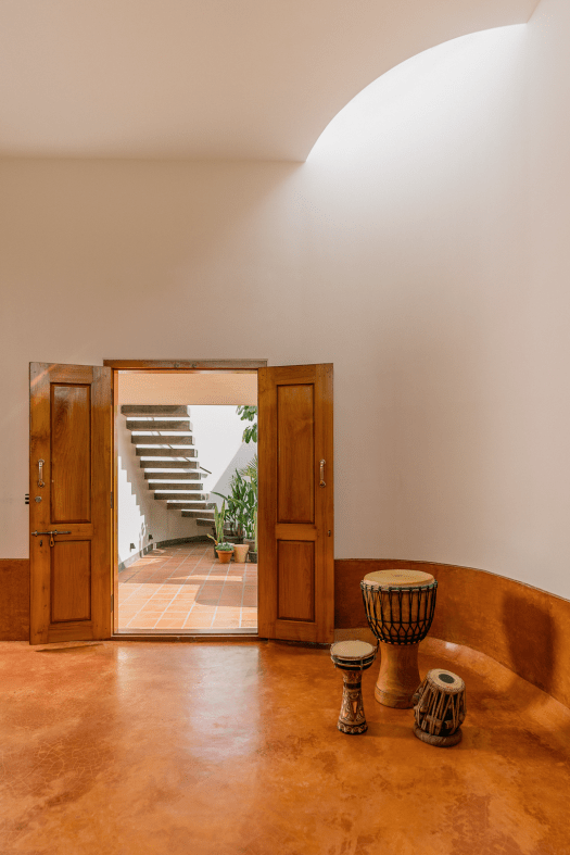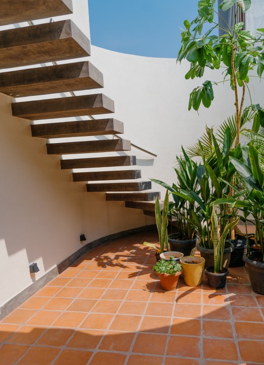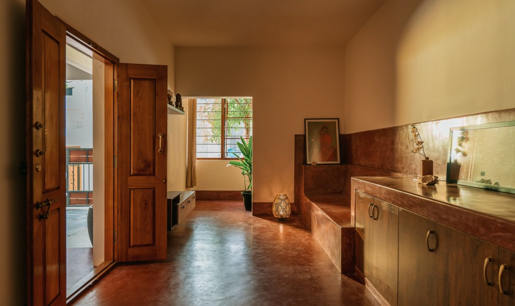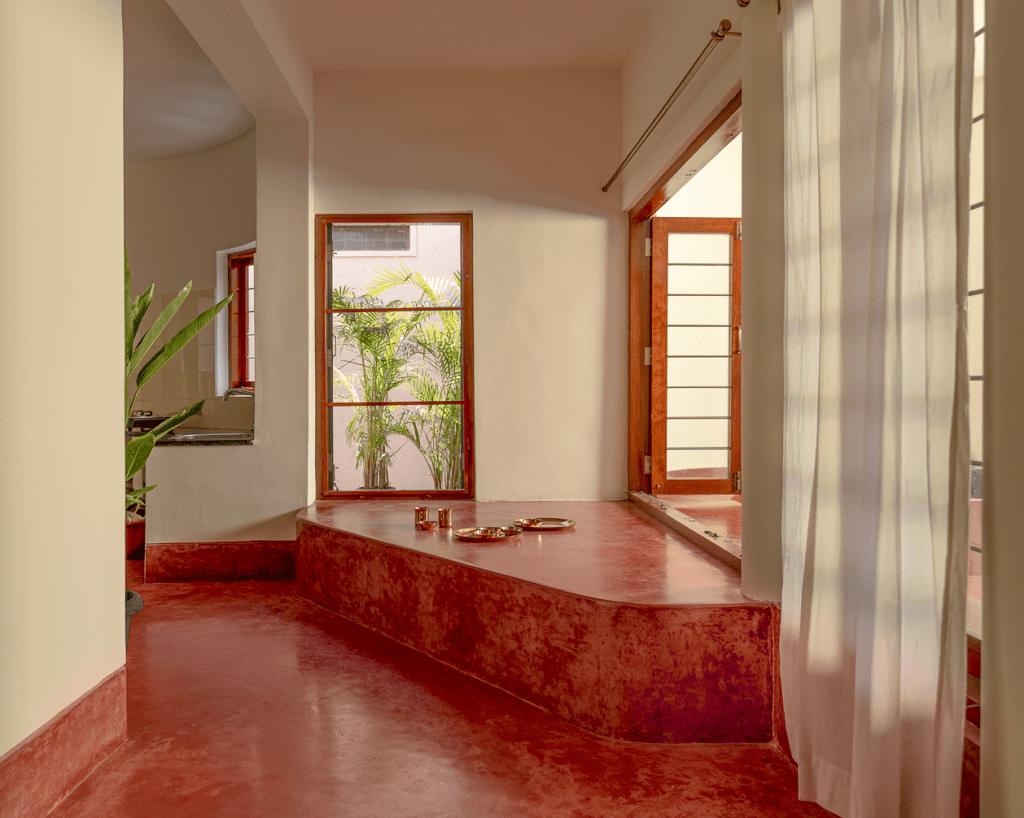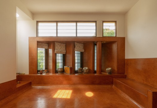 The clients Ashok and Savita – an artist and an accountant, are people for whom Minimalism is a way of life. This is a home for people whose neighbors are a part of their lives, who have more goodwill than material possessions, and lead simple, spiritual lives.