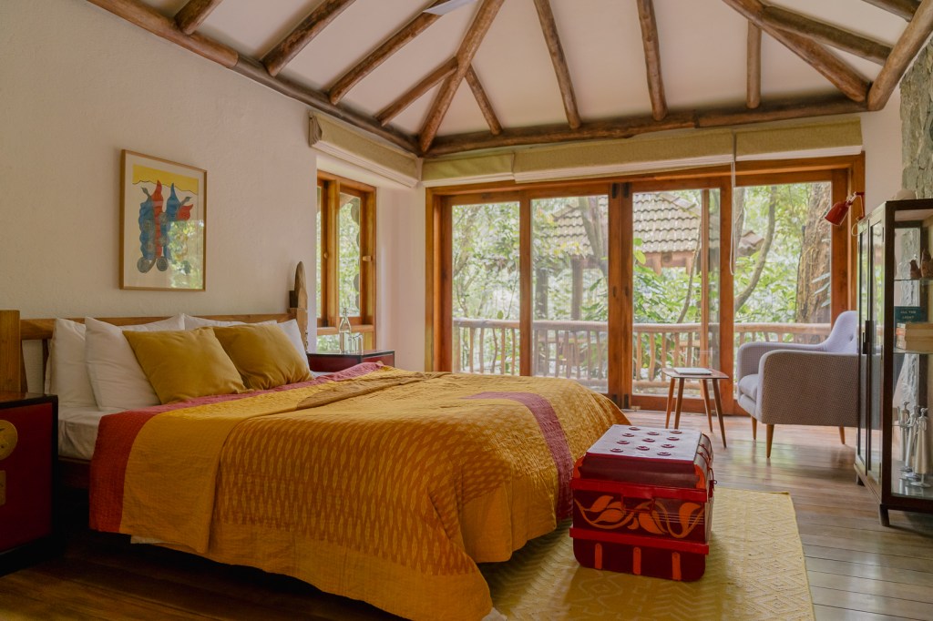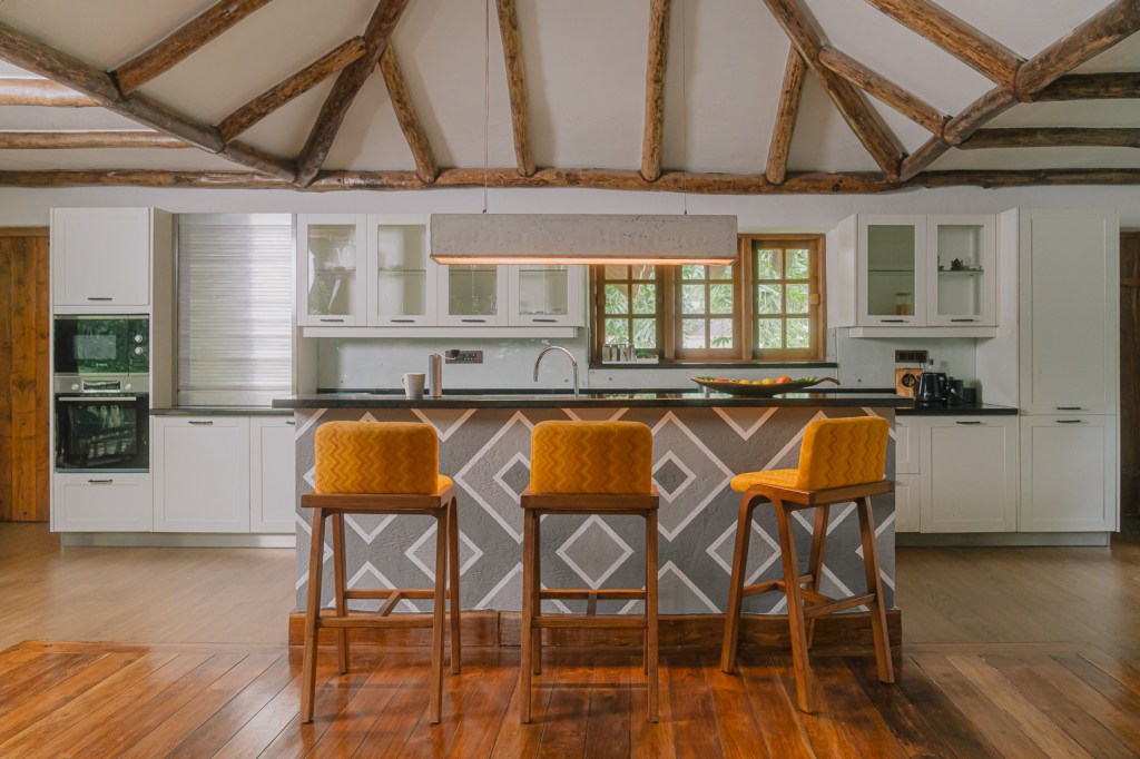 This project is a collaboration between Umber and Divya Runwal – a fashion designer turned art director. We approached the house as a series of sets. I brought a love of Corbusier’s paintings to the table, and Divya brought a love of kilims and earthy hues. This, combined with our mutual love of mid-century furniture, set the tone for the design. The design responds to the existing rustic palette with subtle and refined pieces that fit into the existing aesthetic without repeating the theme.