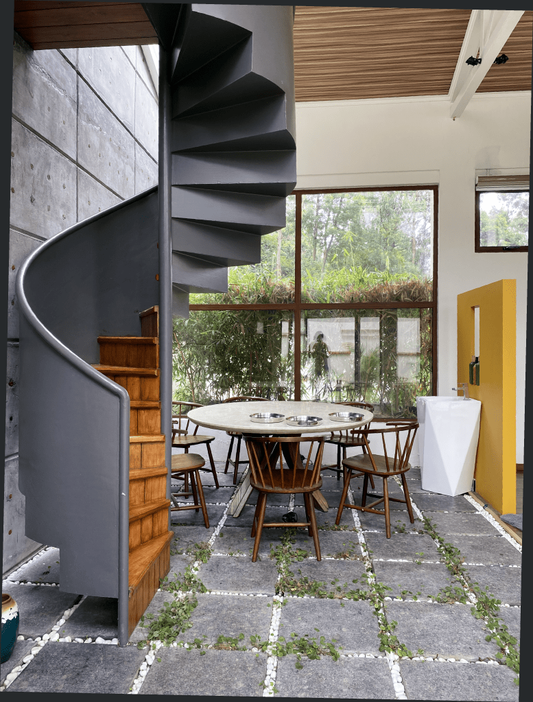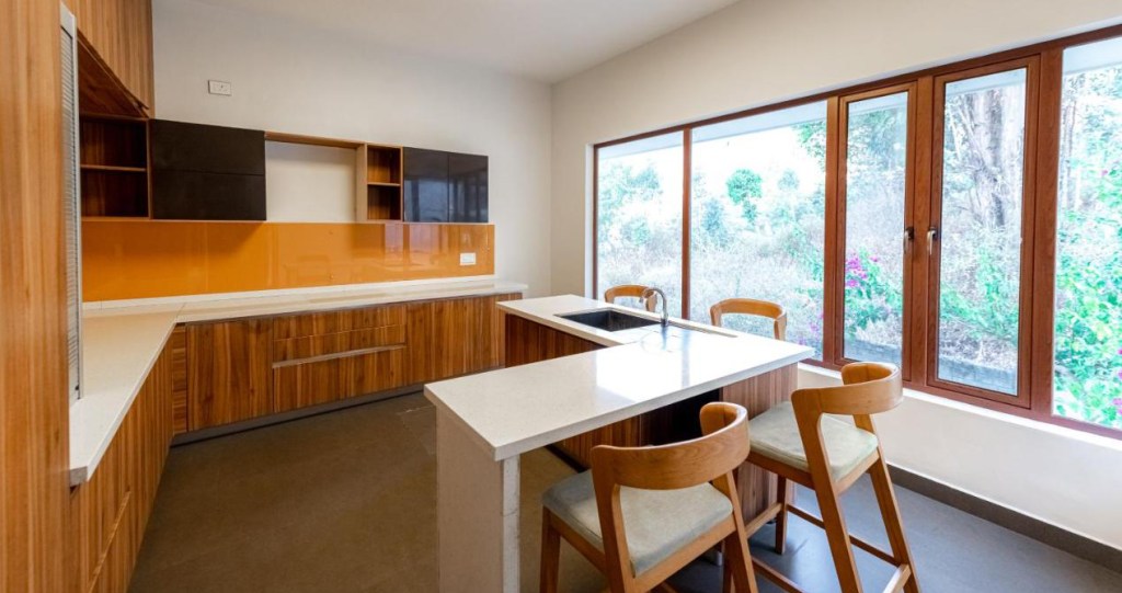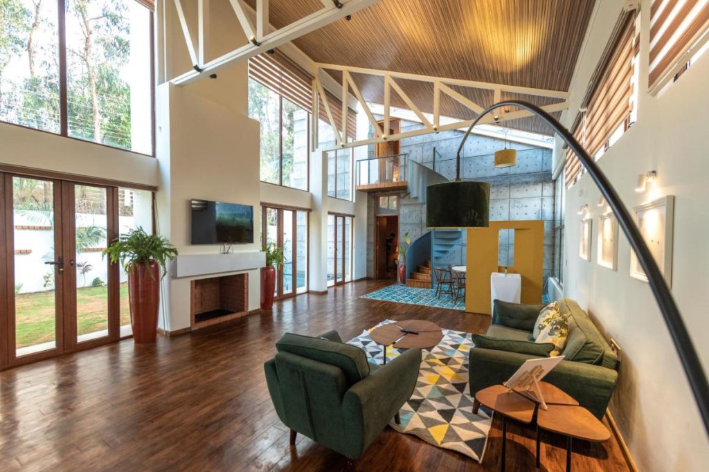 This gorgeous, steeply sloping site in Ooty asked for a home with levels and layers. The Living and Kitchen areas have large windows that overlook a reserve forest area in the South. The Bar and Bedroom volumes are angled towards an enchanting view of the Valley in the North East. Much creativity was expended in designing for the potential of the site while still making this house Vastu compliant.